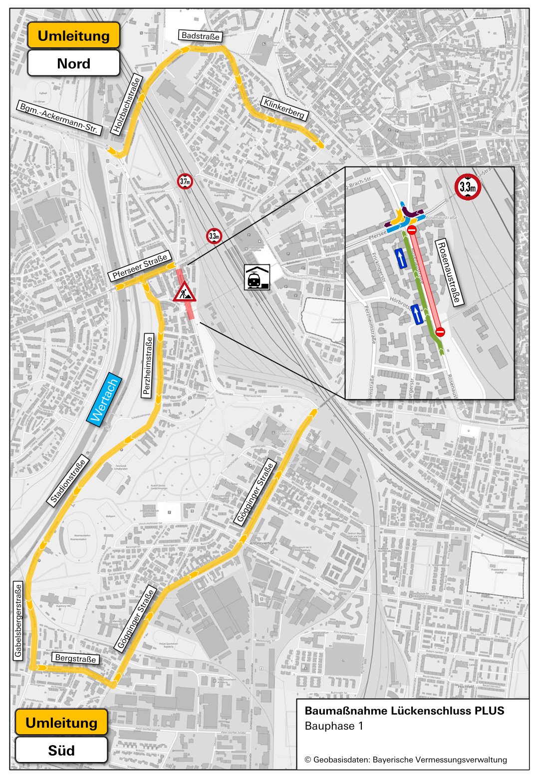 Richtung Norden: Umleitung über Schießstättenstraße und am Wertachkanal.