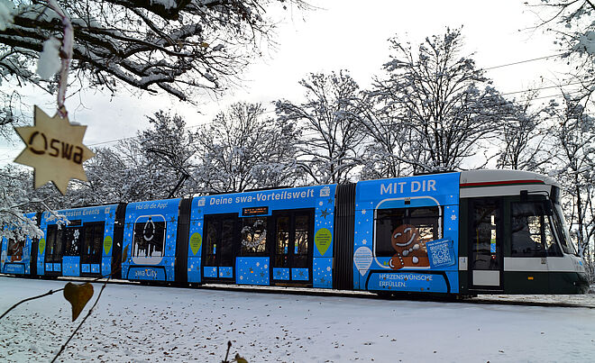 Mit der Christkindltram, dem beliebten Gepäckbus und der großen Herzenswunsch-Spendenaktion verwandeln die swa die Stadt in ein vorweihnachtliches Erlebnis.