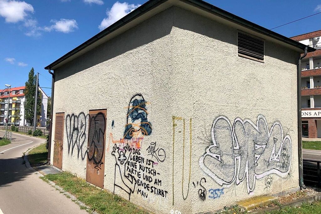 Im Augsburger Textilviertel entsteht die 50. Graffiti-Station der Stadtwerke Augsburg (swa). Der Graffiti-Verein „Die Bunten e.V.“ gestaltet die Station aber nicht allein.