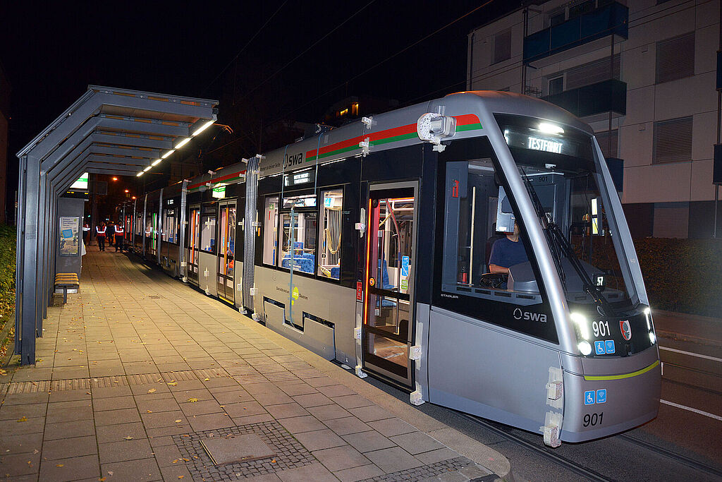 Die erste Bahn sollte ursprünglich 2022 kommen. Doch Corona, der Krieg in der Ukraine und unterbrochene Lieferketten führten zu Verzögerungen. Die erste Tramlink wurde im August 2023 geliefert. Es folgten zahlreiche Tests: Bremsprüfungen, Eingleisübungen mit der Feuerwehr, Schlepp- und Schiebetests sowie echte Testfahrten im Netz – inklusive der anspruchsvollen Bremsleistung am Perlachberg. Daraus abgeleitet wurde die Technik vom Hersteller Stadler für Augsburg optimiert und die Straßenbahnen für ihren Einsatz im Fahrgastbetrieb vorbereitet. „Wir hatten einen Verzug von zwei Jahren. Das ist bei solchen Projekten nicht unüblich“, berichtet Röder. „Wichtiger ist in erster Linie immer die Sicherheit. Die Bahn wird auf Herz und Nieren geprüft – ohne Ausnahme, ohne Restzweifel.“