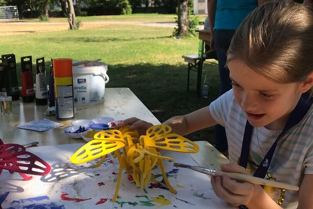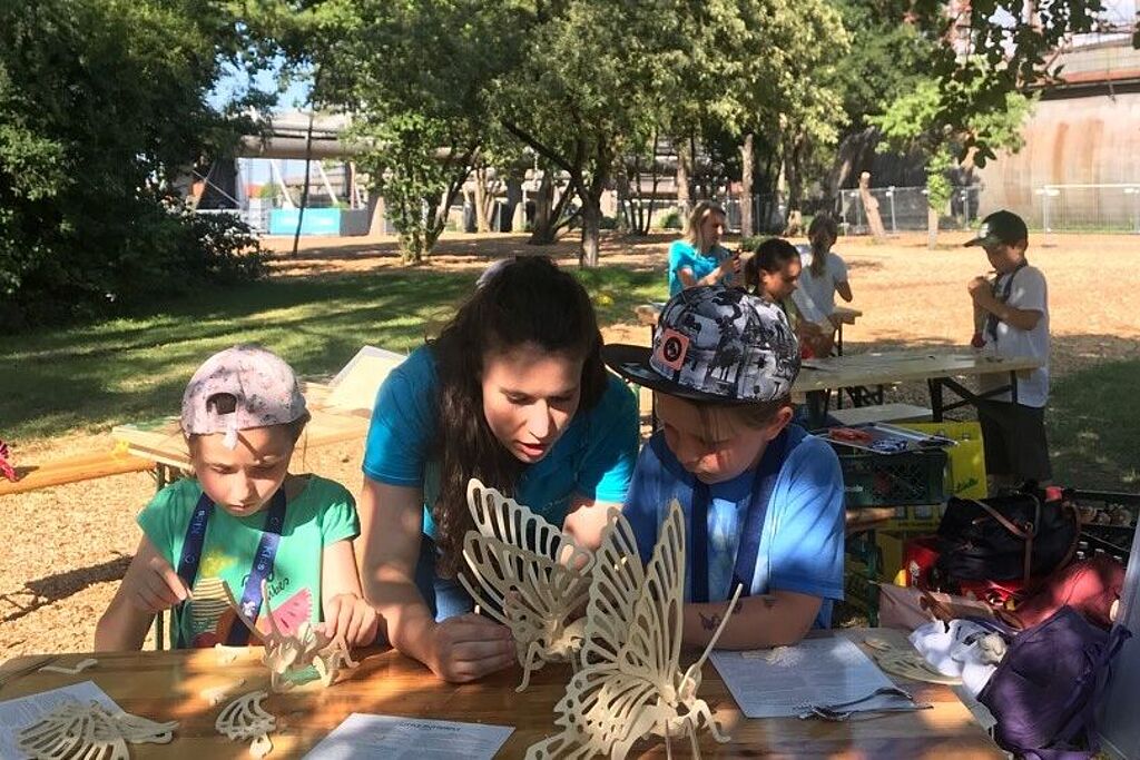 Fleißig bei der Vorbereitung der #ARTenvielfalt-Aktion unterstützt haben die swa Kids im Rahmen einer großen Bastelaktion im Gaswerk. Die Bausätze für die 100 Holztiere, bestehend aus insgesamt rund 3.000 Einzelteilen, mussten nach Anleitung wie ein dreidimensionales Puzzle zusammengebaut werden. Anschließend durften sich die Kinder noch kreativ austoben und die Tiere nach Lust und Laune mit Farbe, Glitzer und sonstiger Dekoration verschönern.