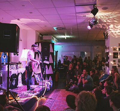 Sebastian: Es sollte direkt in der Innenstadt sein. Außerdem auf jeden Fall Indoor, damit man vor allem die Besucherzahlen regulieren kann. Dadurch war gewissermaßen auch der Zeitraum vorgegeben: Frühjahr. Denn wenn es im Sommer heiß wird, geht doch keiner mehr irgendwo rein. Und es sollte nicht nur auf Musik aufbauen, sondern auch andere Elemente mit einbringen. Generell: Die Besucher sollten das Programm in gewisser Weise mitbestimmen können. Das waren unsere damaligen Vorgaben. Und so ist nach und nach die Idee zum Modular entstanden.