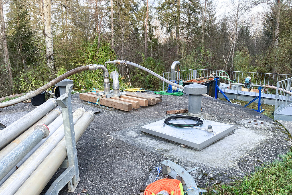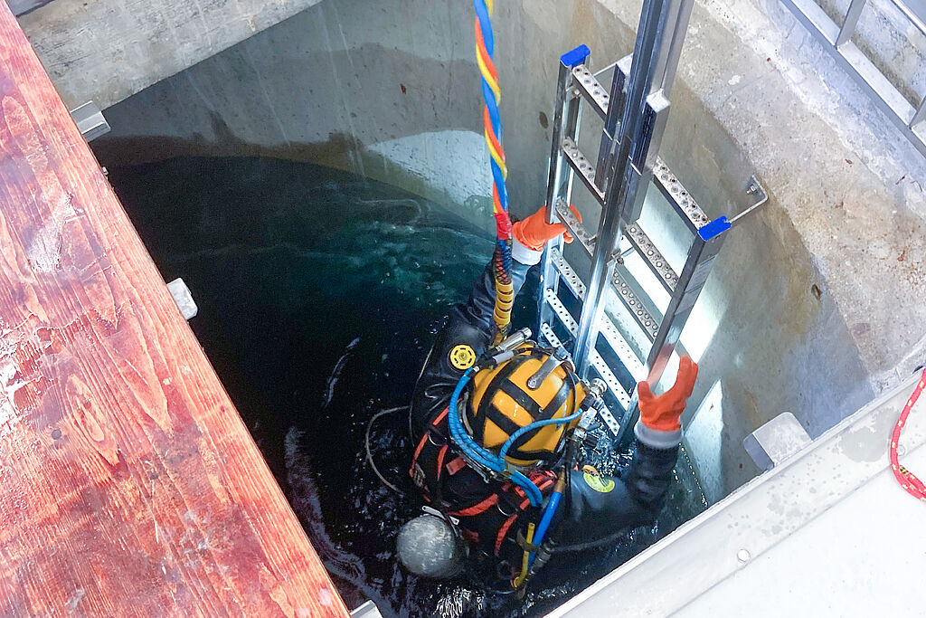 Während die Reinigung bei Vertikalbrunnen dank des leicht zugänglichen Filterrohrs vergleichsweise einfach ist, ist sie bei Horizontalfilterbrunnen eine Herausforderung. Die unterirdisch verbauten Filterstränge werden zunächst mit einer Kamera untersucht. Anschließend erfolgt die Reinigung mit Hochdruck und Impulswellen, wodurch sich Ablagerungen in den Filterschlitzen und im Kies um die Filterrohre lösen und ausgespült werden. Parallel dazu wurden Reparaturen vorgenommen, damit der Brunnen wieder dem Stand der Technik entspricht. Da diese Arbeiten in einer Tiefe von rund 20 Metern stattfinden, werden dafür Brunnentaucher engagiert. Nach vier Monaten Arbeitszeit und erfolgreicher Qualitätsprüfung ging der Brunnen wieder ans Netz und liefert wieder deutlich mehr frisches Trinkwasser. Die Reinigung macht den natürlichen Alterungsprozess eines Brunnens teilweise rückgängig. Die Förderleistung, also die Wassermenge pro Sekunde, steigt dadurch deutlich. So stellen die swa sicher, dass bestehende Ressourcen sinnvoll und effizient genutzt werden – ein wichtiger Beitrag zu einer nachhaltigen und verantwortungsvollen Trinkwassergewinnung.