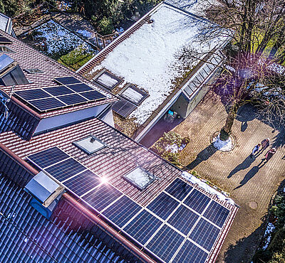 Kann ich meine Photovoltaikanlage auch nach Osten und Westen ausrichten? Ja, das ist durchaus sinnvoll. Das Ziel beim Kauf oder bei der Pacht einer Photovoltaikanlage ist, so viel wie möglich im eigenen Haushalt zu verbrauchen. Dies kann durch verschiedene Maßnahmen erreicht werden. Zum Beispiel durch Verwendung eines Batteriespeichers oder eines Heizstabes für die Warmwasserbereitung. Eine ganz einfach Lösung, um den Eigenverbrauch zu verbessern, wäre, falls möglich, die Montage der Photovoltaikanlage auf der Ost- und Westseite des Hausdaches. Dadurch lassen sich Morgen- und Abendsonne besser ausnutzen.