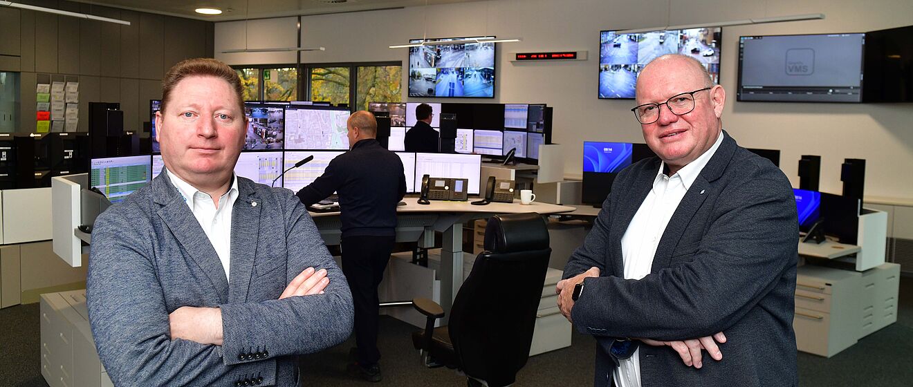 Für die Leitstelle sind insgesamt drei Unfallhilfswägen unterwegs. Wer die Verkehrsmeister-Prüfung bestanden hat, darf die Unfallhilfswägen fahren. Der Unfallhilfswagen fährt täglich bereits morgens um 3:30 Uhr los und ist bis zum Betriebsschluss des ÖPNVs, beziehungsweise bei Sondereinsätzen und Betriebsstörungen auch länger, im Einsatz. „Die Kollegen prüfen zum Beispiel bei der Streckenkontrolle auf einer Straßenbahnlinie, ob auf der Strecke alles in Ordnung ist oder zum Beispiel Falschparker den ÖPNV behindern“, berichtet Walter Neu, Abteilungsleiter Betriebslenkung/ Leitstelle Verkehr. Sie kümmern sich zudem um die Kontrolle der Baustellen, die durch die swa beauftragt wurden, und achten auch hier auf mögliche Probleme oder Störungen. Die Fahrzeuge stehen dabei über Digitalfunk mit der Leitstelle in Kontakt. Auch bei Unfällen kommen sie zum Einsatz und sind für die Unfall-Aufnahme und die Dokumentation des Unfallhergangs verantwortlich. Zudem agieren sie als Ansprechpartner für Rettungskräfte, Polizei sowie die Leitstelle Verkehr und versuchen, die Strecke so schnell wie möglich freizubekommen. Eduard Peter fügt hinzu: „Die Unfallhilfswägen sind zudem Begleitfahrzeuge bei Veranstaltungen wie Demonstrationen, Umzügen oder Demonstrationszügen.“