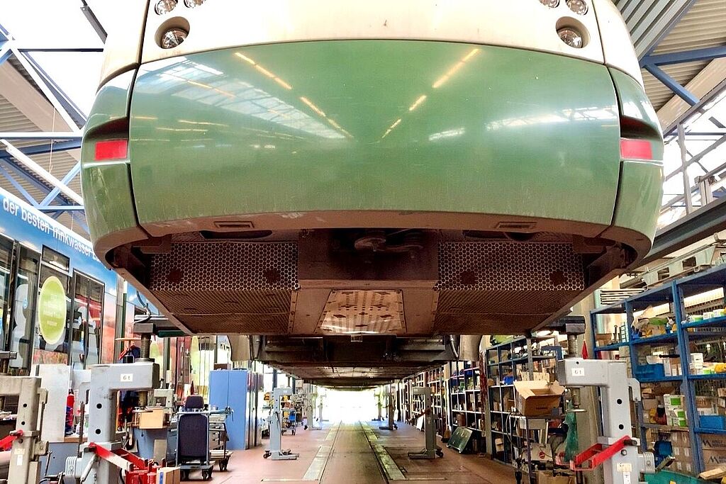 Damit bei Bussen und Straßenbahnen alles rund läuft, kümmern sich 130 Werkstattmitarbeiter*innen direkt vor Ort um die Fahrzeuge. Das vermeidet lange Transportwege in andere Werkstätten und sorgt dafür, dass die Flotte möglichst lange im Einsatz bleiben kann. Egal, ob Fahrwerk, Besandungsanlage zum Bremsen oder Stromabnehmer, die swa vereinen alle Spezialgebiete der Wartung und Reparatur unter einem Dach. Sogar eine Maschine, mit der die Stahlräder der Straßenbahnen neu geschliffen werden können, steht in den Werkstätten der swa.