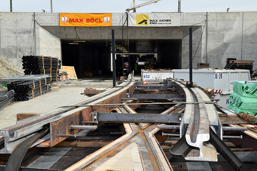 Die unterirdische Baustelle birgt dabei einige Herausforderungen. Im Tunnel ist weniger Platz, als bei einer überirdischen Baustelle. Für den Antransport auf die Baustelle ist Präzision gefragt. Große Bauteile wie beispielsweise die Weichen können im Tunnel nur mit kleinen Mobilkränen und Teleskopstaplern bewegt werden. Auch für große Baugeräte musste eine Lösung gefunden werden, denn sie haben keinen Platz im Tunnel. „Der Beton für das Einbetonieren der Gleiströge wird zum Beispiel über Schlauchleitungen zur Einbaustelle in der Wendeschleife gepumpt“, beschreibt swa Oberbauleiter Thomas Weinl. „Die große Betonpumpe steht hierbei am Tunnelportal West“.