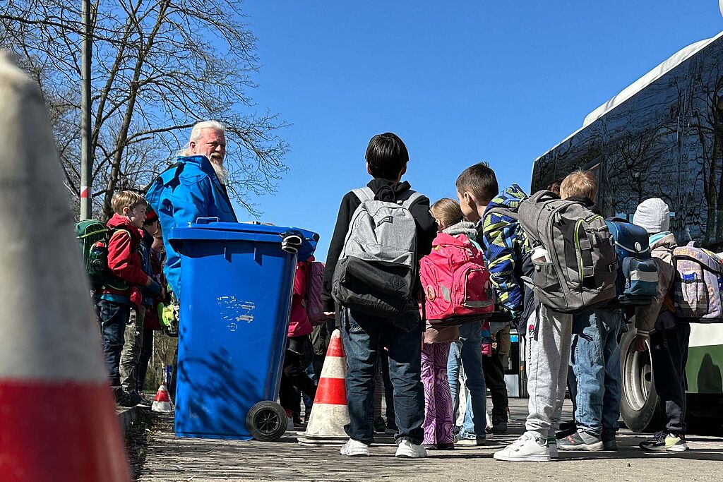 „Die Kinder dürfen beim ersten Einstieg richtig drängeln und sich austoben, während ich die Zeit stoppe, bis alle im Bus sitzen. Beim zweiten Mal geht es geordnet zu – also Schultasche in die Hand nehmen und maximal zu zweit einsteigen. Und siehe da, es geht natürlich deutlich schneller und keiner tut sich weh oder wird verletzt, was beim Drängeln passieren kann“, erklärt Andreas Adam. Und auch beim Sitzen gibt es einiges zu beachten: Den Schulranzen auf dem Rücken zu lassen ist keine gute Idee. Wenn der Bus stark bremsen muss und die Schülerinnen und Schüler nur auf der vorderen Kante sitzen, können sie schnell vom Sitz herunterfallen, da das ganze Gewicht auf dem Rücken liegt und sie nach vorne drückt. Daher unbedingt: Schulranzen zwischen die Füße stellen und auf der ganzen Sitzfläche sitzen.