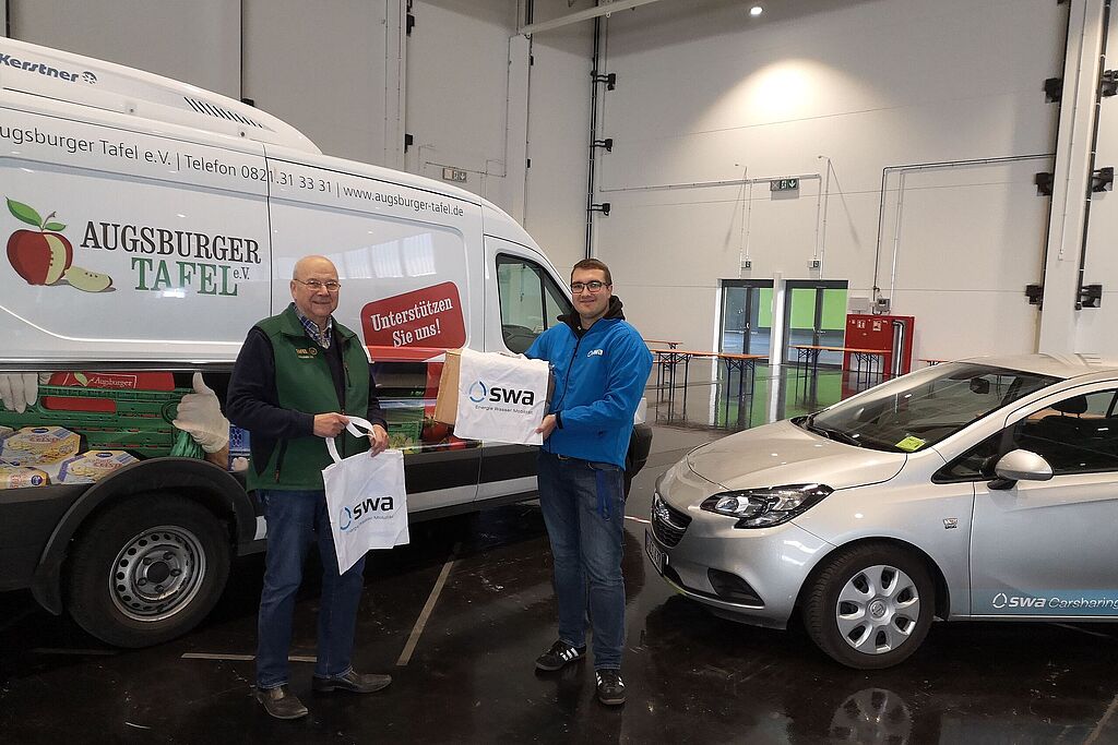 Die Augsburger Tafel und der SKM Augsburg sorgen dafür, dass Bedürftige mit Lebensmitteln versorgt werden. Um diese möglichst einfach auszugeben, haben die swa Stoffbeutel an die Institutionen gespendet. Darin packen die Helfer die Lebensmittelspenden ein und stellen sie für die Abholer bereit und liefern diese aus. Bereits seit 2009 fördern die swa die wichtige Arbeit der Tafel im Rahmen eines Sponsoringvertrags und helfen den rund 200 Ehrenamtlichen auch sonst, wo immer es geht. Zum Beispiel arbeiten die Auszubildenden der swa, die swa Talents, im Rahmen des Social Day bei der Tafel mit oder helfen bei der Sammlung von Lebensmittelspenden.