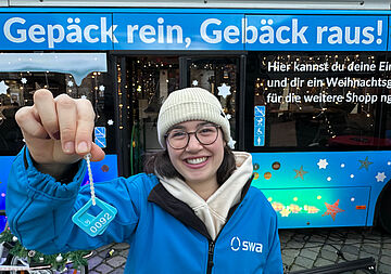 Die swa sind auch in der Vorweihnachtszeit immer an deiner Seite. Ob zum Weihnachtsshopping in der Innenstadt oder zum Christkindlesmarkt auf dem Rathausplatz, unsere Busse und Straßenbahnen bringen dich hin. Welche weihnachtlichen Aktionen dich noch erwarten, liest du hier: