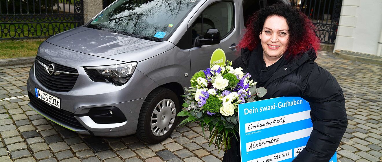 Der Ridesharing Dienst swaxi der Stadtwerke Augsburg (swa) ist weiter auf Erfolgskurs. Mit Aleksandra Sucur hat sich die 11.111 Kundin die App heruntergeladen und registriert. Mit einem Blumenstrauß und einem Gratis-Fahrtguthaben in Höhe von 111 Euro wurde sie von Robert Underberg, Leiter der Mobilitätsentwicklung bei den swa in Empfang genommen: „Für mich war das eine große Überraschung, als ich davon erfahren habe die 11.111 swaxi Kundin zu sein“, freut sich Aleksandra Sucur über ihren Gewinn. Sie wolle in Zukunft das swaxi hauptsächlich abends nutzen, wenn Bus und Straßenbahn nicht mehr fahren. „Für uns ist das natürlich ein super Zeichen die 11.111 Kundin zu haben und zeigt, wie sehr wir mit unserem Ridesharing-Dienst auf Erfolgskurs sind“, freut sich auch Robert Underberg. „Pro Monat haben wir immer knapp 3.000 Fahrgäste, die wir vor allem in den späten Abendstunden an ihr Ziel bringen.“